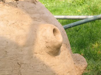 Abb.13 - Verputzen der Außenwand mit Lehm