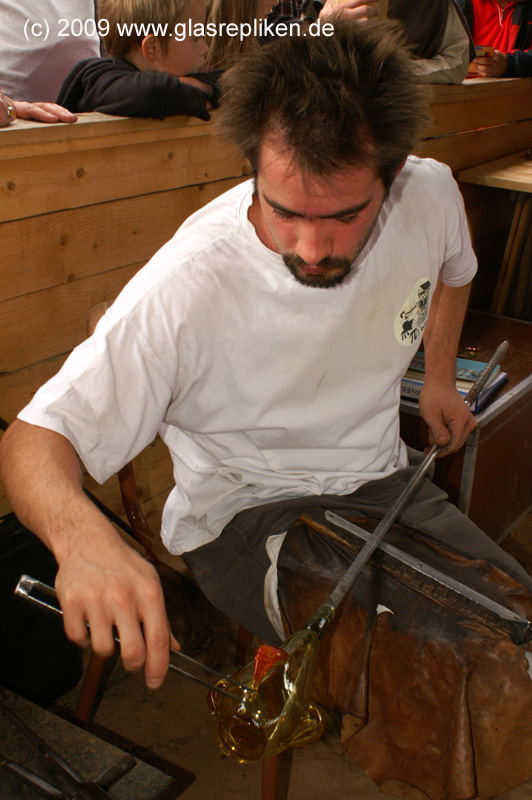 Herstellung eines Rüsselbechers: Anheften eines Rüssels.