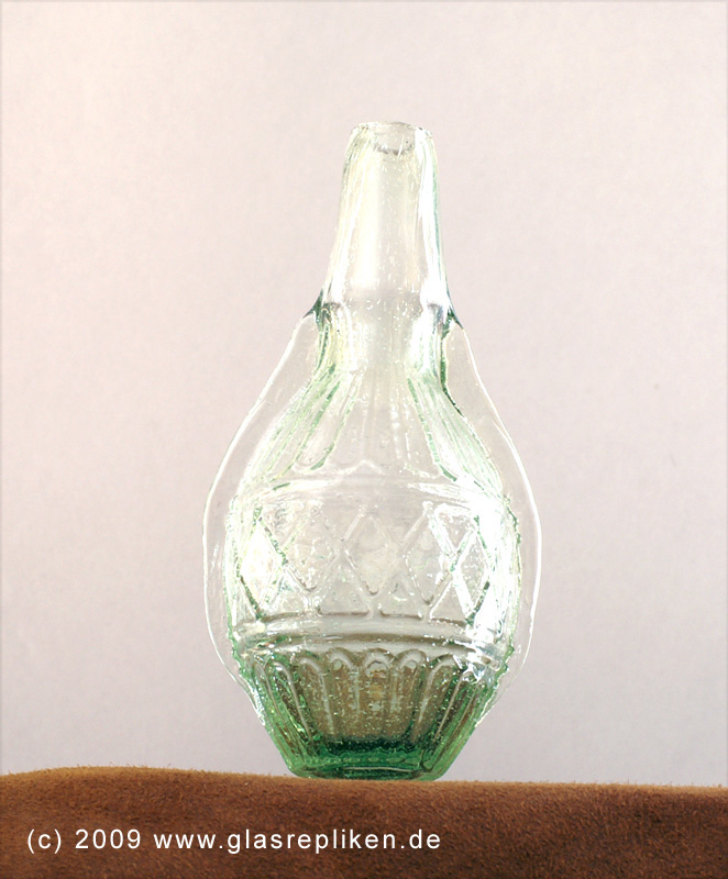 Fehlproduktion: Die zweiteilige Form war während des Einblasens nicht komplett geschlossen, daher die Grate am Korpus.