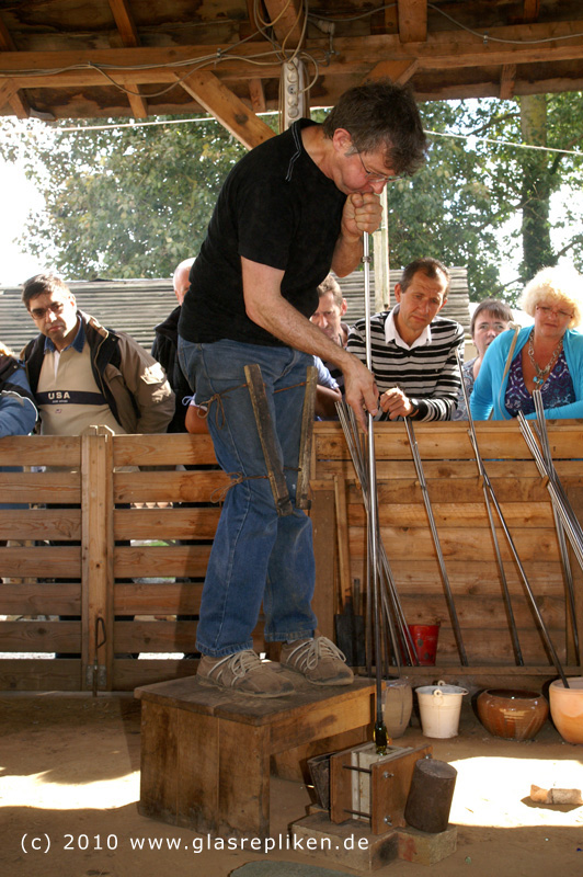 Herstellung einer formgeblasenen Vierkantflasche: Einblasen in die Form
