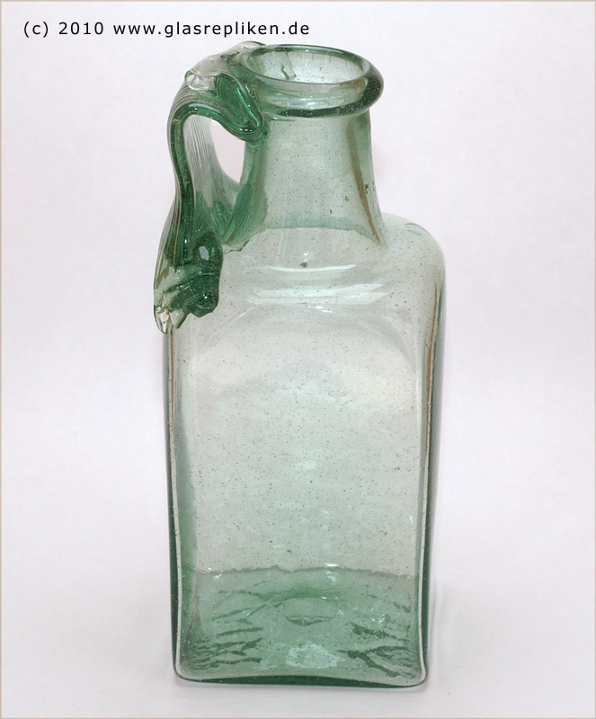 Herstellung einer formgeblasenen Vierkantflasche: das fertige Glasgefäß