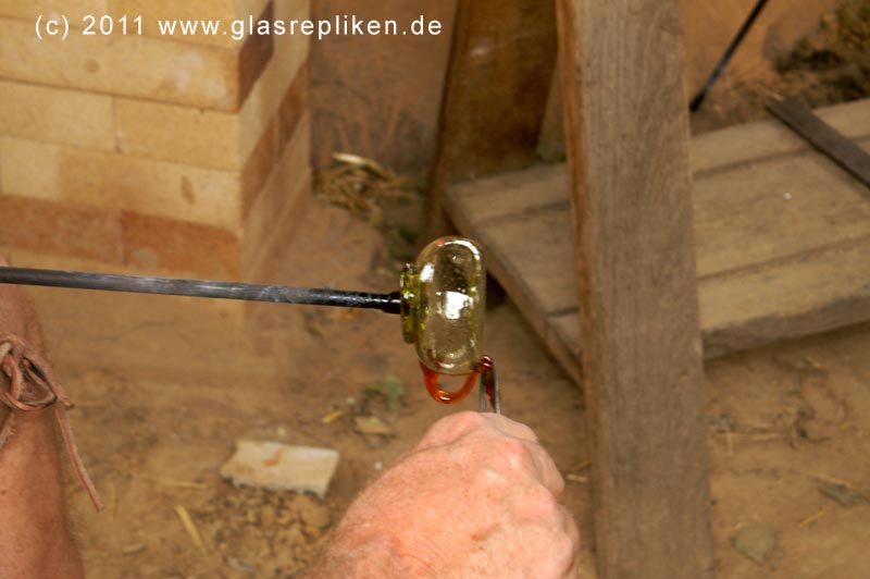 William Gudenrath arbeitet an einer Öllampe aus Glas: Ansetzen des Henkels.