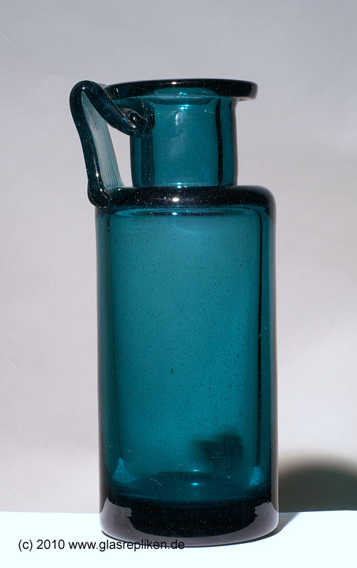 Zylindrische Flasche mit Bandhenkel, vermutlich aus der Ichendorfer Glashütte (ungemarkt) Fertigung / Erwerb der Replik: ? / 2010 (gebraucht) Höhe ca. 25cm