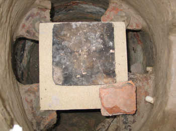 Die Glashäfen standen in einem Sandbett auf kleineren Ziegeln. Der Sand sollte verhindern, daß heruntergelaufenes, geschmolzenes Glas die Häfen mit den Ziegeln verklebte.