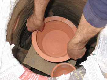 Abb.10 - beide Glashäfen im kleinen Arbeitsofen in Position; rechts ofen ist die Arbeitsöffnung zu sehenText & Fotos © 2006 Mark Taylor & David Hill