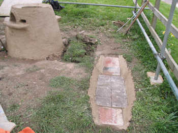 Abb.1 - der Boden der Feuerkammer ist mit Steinplatten, Ziegeln und Lehm ausgelegt