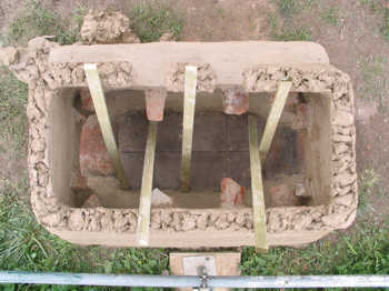 Abb.20 - AufsichtDie in den Bildern 21 bis 29 sichtbaren Holzlatten dienten temporär als Wandabstützung, da die Wände des Kühlofens nicht schnell genug trockneten und unter ihrem Eigengewicht einzustürzen drohten.
