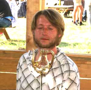 | Anläßlich des "Open Monumentendag" am 12. und 13. September 2009 im Provinciaal Archeologisch Museum Velzeke (Belgien) war wieder der dort rekonstruierte römische Glasofen über einen Zeitraum vom 7. bis zum 13. September im Betrieb. Dieses Mal waren wieder François Arnaud (Atelier PiVerre, Frankreich) und Torsten Rötzsch (1) aus Deutschland sowie Mariken Dumon (Belgien) an dem Glasofen zu sehen. Da die ROMAN GLASSMAKERS Mark Taylor & David Hill zu diesem Termin leider nicht eingeladen waren, mußte Frank Wiesenberg einige koordinative Aufgaben - und Mitarbeiter sowie Freunde des PAM deutlich mehr Heizer-Schichten (2) am Ofen übernehmen. Am Montag, dem 7. September 2009 wurde der Glasofen zum langsamen Aufwärmen zunächst auf ca. 200°C angewärmt. Am folgenden Dienstag begann die eigentliche Aufwärmphase auf die mindestens 1000°C Ofentemperatur (gemessen im bereich der Hafengefäße). Die Temperatur wurde stetig um 50°C (statt in den vorangegangenen Experimenten um ca. 30°C) pro Stunde erhöht, wodurch die Anheizphase deutlich verkürzt wurde. So war der Ofen bereits Mittwochmittag heiß genug, so daß direkt nach Ankunft von François Arnaud das Glas in die Glashäfen eingefahren werden konnte. Bis zum Freitag arbeitete François Arnaud alleine am Glasofen - danach füllte sich der Kühlofen deutlich schneller, denn dann stießen Torsten Rötzsch und Marieke Dumon dazu. Samstag- und Sonntagabend zeigte sich, daß der Kühlofen deutlich zu klein für zwei bis drei arbeitswütige Glasbläser bemessen ist. Insbesondere am Sonntagabend stapelten sich die Glasgefäße mindestens in Dreierlagen im Kühlofen! Ein zweiter Kühlofen in der gegenüberliegenden Ecke des Schutzbaues ist deswegen bereits in Planung. Der Kühlofen wurde am Donnerstag zunächst mit einer Temperatur von 450-515°C betrieben (3). Am Freitagmorgen zeigten einige Gefäße Überhitzungsschäden an den Gefäßböden sowie einige schiefe Hälse - aber auch Spannungsrisse waren zu beobachten (4). Durch das (eigentlich ungeplante) Entfernen der tönernen Schutzkappe auf der Meßspitze des Digitalthermometers wurde die Messung deutlich sensibler, was fortan helfen sollte, die Temperaturspanne des Kühlofens weiter einzuschränken und die Maximaltemperatur zu beschränken. 480-500°C waren nun die Sollwerte, was sich als schwierig, aber durch den Einsatz von in recht kleine Scheite gespaltenes Holz letztendlich machbar erweisen sollte. Voraussetzung war, daß der Arbeitsofen kaum unbeobachtet gelassen werden konnte. Aber so gelang es, weitere Überhitzungsschäden komplett zu vermeiden und den Verlust durch Spannungsrisse (trotz einiger dickwandiger Sandkerngefäße) auf einen Defekt für die drei letzten Arbeitstags zu beschränken. Möglicherweise ist es auch der ewas reduzierten Maximaltemperatur des Kühlofens zuzuschreiben, daß der bei den vorigen Experimenten bei einigen Glasgefäßen aufgetretene eingebrannte (?) stumpfe Belag nun bei allen Gefäßen komplett abgewischt werden konnte! Dieser stumpfe Belag hatte zuvor Überlegungen ausgelöst, den geplanten zweiten Kühlofen mit einer vom Rauch gekapselten Gefäßkammer zu versehen. Die Erfahrungen der letzten Experimente und die deutliche Einschränkung des gefahrenen Temperaturbereichs haben gezeigt, daß diese Modifikation der Kühlofen-Konstruktion nicht zwingend notwendig ist. Mit genügend Erfahrung und etwas Glück überleben alle Glasgefäße den Kühlofen unbeschadet! Insgesamt hat auch der schon etwas lädierte (und notgeflickte) Kühlofen diese Arbeitsphase etwas besser überlebt als der Arbeitsofen. An letzterem zeigten sich während des Betriebs deutliche Verschleißerscheinungen um die Vorheizlöcher herum und an der Schüröffnung. An den Balkonen, auf denen die Reduzierringe und die Tore vor den bzw. seitlich der Arbeitsöffnungen stehen, zeigen sich deutliche Risse. Und vom umlaufenden Sims im Inneren des Ofens, auf dem die Hafengefäße stehen, sind schon deutliche Brocken abgebrochen. Wenn man berücksichtigt, daß diese Öfen aller Wahrscheinlichkeit nicht dazu bestimmt waren, nur sporadisch genutzt zu werden, dann sind diese Risse keine Überraschung. Mit etwas Reparaturarbeit dürfte eine weitere Nutzungsphase im September 2010 aber kein Problem darstellen. Auch dieses Mal wurden wie auch im Mai 2009 verschiede Aschenproben vom Kühl- und Arbeitsofen genommen. Sie werden als Referenzproben in eine Arbeit der Universität Bayreuth (5) einfließen. Zurück zum September 2009: Den Zuschauern wurden die verschiedensten Glas-Fertigungstechniken wie die Herstellung von Sandkerngefäßen, formgeblasenen Gefäßen wie prismatischen Flaschen und auch frei geblasenes Glas demonstriert. Bei letzteren sollten Tüllenflaschen, Kannen mit Kettenhenkeln, diverse Becherformen, Multi-Henkelkannen, Ringflaschen, ein Kantharos und auch Rüsselbecher nicht unerwähnt bleiben. Eine kleine Änderung im Plan erzwang die Pleite des letztjährigen Birkenholz-Zulieferers. Trockene Birkenstämme von 80-100cm Länge und etwa 25cm Umfang waren kurzfristig nicht beschaffbar - das selbe in Buchenholz hingegen schon. Allerdings brennt Buchenholz zwar schön lange, aber mit kürzerer Flamme als Birkenholz. Dies verursachte dem Team etwas Bauschschmerzen, ob in Höhe der Hafengefäße die erforderliche Temperatur von 1050-1075°C erreicht und kontrolliert gehalten werden konnten. Am Donnerstag und Freitag zerstreute der Testbetrieb des Ofens zwar die Befürchtungen, da aber von den beiden vorhergegangenen Projekten noch eine Restmenge an schön trockenem Birkenholz vorhanden war wurde dieses während der publikumsoffenen und somit arbeitsintensiven Zeiten am Samstag und Sonntag dem Buchenholz vorgezogen. Während der "Nachabsenkung" des Ofens auf ca. 1000°C kam dann wieder das Buchenholz zum Einsatz. Es zeigte sich also während dieser Betriebsphase des Ofens, daß neben Birke auch Buche am Arbeitsofen eingesetzt werden kann - allerdings verdoppelte sich die Aschen- bz